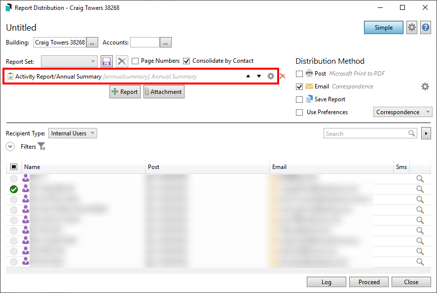 To access configuration of the Activity Report, add the report to any report distribution screen and select the configuration icon. For regular reporting based on what is setup it is recommended to save the report/s as a Report Set.