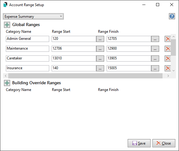 Expense Summary Setup - Setup the Global Ranges (or Building Override Ranges if required) by following the below steps. These are used for the presentation of expenses by category.