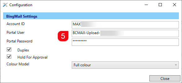 - Enter the BingMail settings as supplied above.