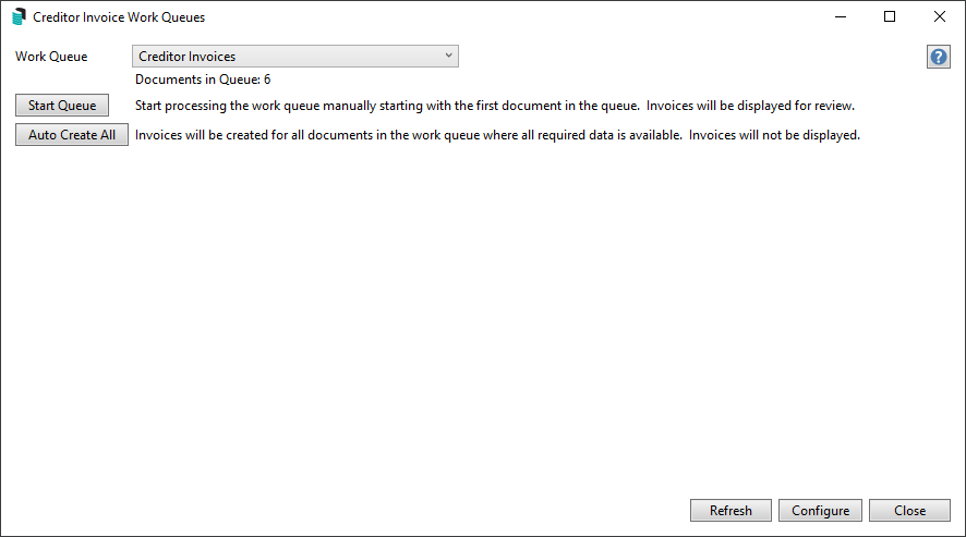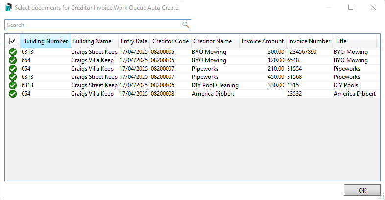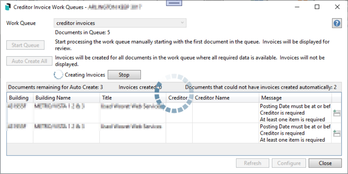 Bulk Creation of Creditor Invoices from a Work Queue