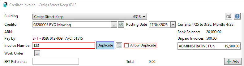 - Earlier identification of a possible duplicate invoice, which will complete the check as soon as the invoice number is entered and again when saved.