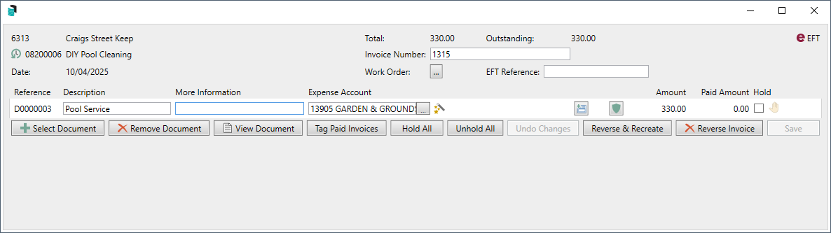 - Ability to save the creditor invoice to the old financial year.
