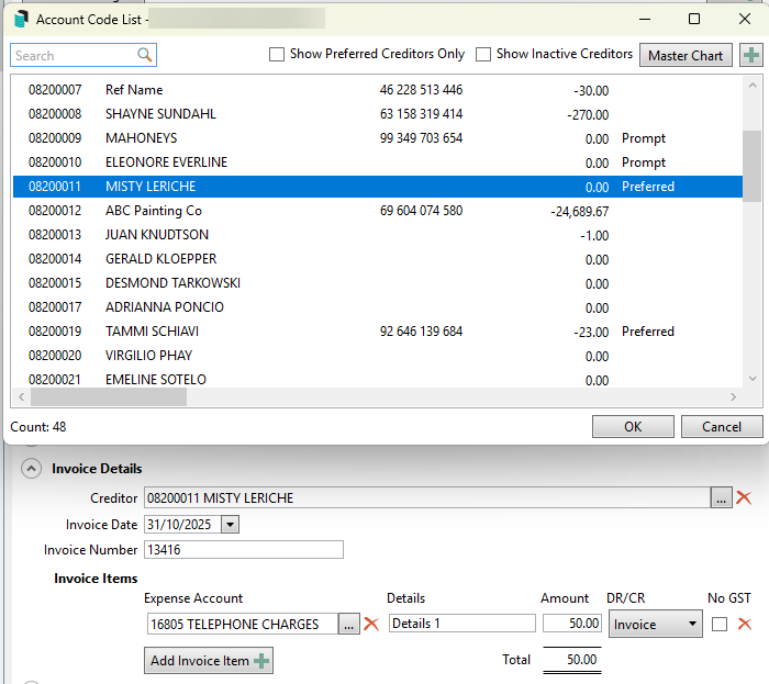 To streamline the end-to-end workflow of processing invoices, the Creditor Invoices screen can be configured to observe or monitor a DocMax Work Queue. Invoices can be processed through either a single Work Queue or a series of Work Queues, depending on how many Work Queues your office requires, which is dependent on how many staff members need to review and/or approve the invoices before they can then be saved in Creditor Invoices.